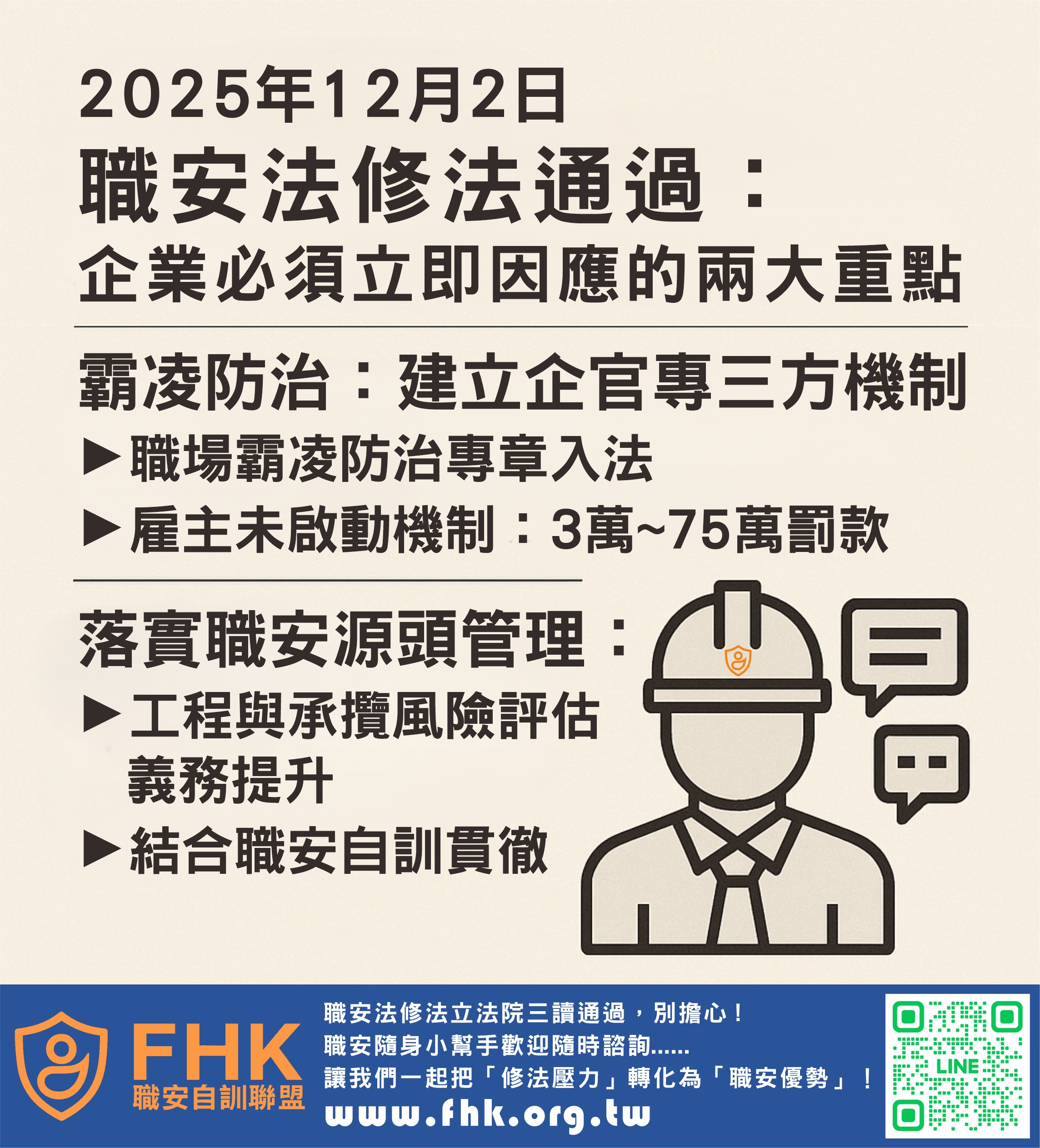 首頁 ﹥ 資訊交流 > 資訊交流 > 2025 職安修法通過:企業必須立即因應的兩大重點